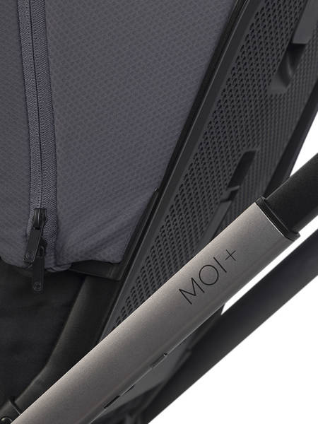 MOI+ jest innowacyjnym wózkiem dziecięcym łączącym niepowtarzalny styl z wszechstronną funkcjonalnością. Posiada teleskopowy system składania, dzięki któremu składa się do niezwykle małych rozmiarów, niezależnie od tego, czy siedzisko zamontowane jest przodem czy tyłem do kierunku jazdy. MOI+ po złożeniu nadal stoi na kołach, co ogranicza ryzyko przypadkowego ubrudzenia tapicerki, czy porysowania konstrukcji. Złożony wózek można również postawić w pionie i ciągnąć za sobą na kołach jak walizkę. Niska waga i kompaktowe rozmiary ułatwiają przenoszenie wózka.