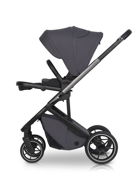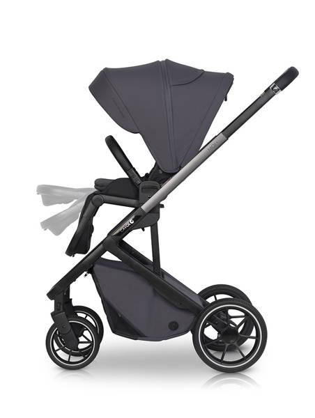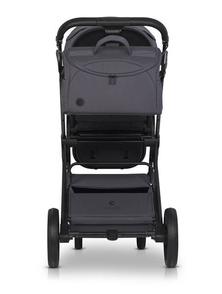 Duży koszyk na zakupy pomieści niezbędne bagaże, ale jeśli potrzebujesz dodatkowej przestrzeni, to możesz dokupić praktyczną torbę zawieszaną na prowadnicy wózka. Posiada ona formę eleganckiego kuferka, który po całkowitym rozsunięciu wszystkich suwaków, zmienia się w matę do przewijania dziecka.