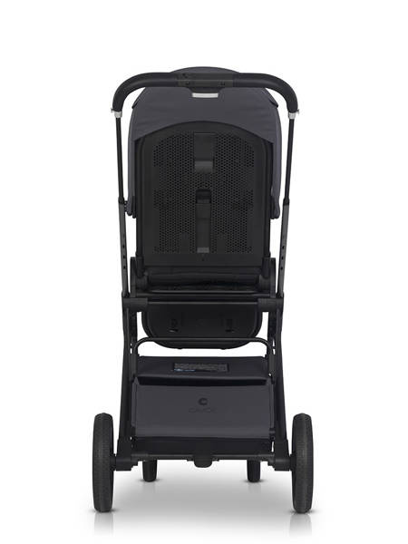 Kompaktowe rozmiary i niska waga wózka połączone zostały z dobrą amortyzacją i dużymi gumowymi kołami. Koła są bezdętkowe i posiadają całoroczny bieżnik, dzięki któremu wózek sprawdzi się o każdej porze roku. Teleskopowa regulacja wysokości prowadnicy pozwoli dopasować wózek do wzrostu osoby prowadzącej. Prowadnica wysuwa się daleko poza linię tylnych kół, więc wysoka osoba nie będzie zahaczać stopami o elementy wózka oraz ułatwione będzie podbicie wózka, na przykład wjeżdżając na krawężnik.