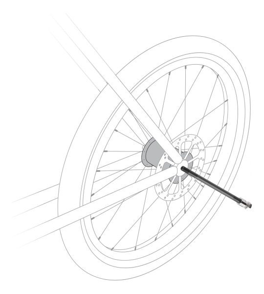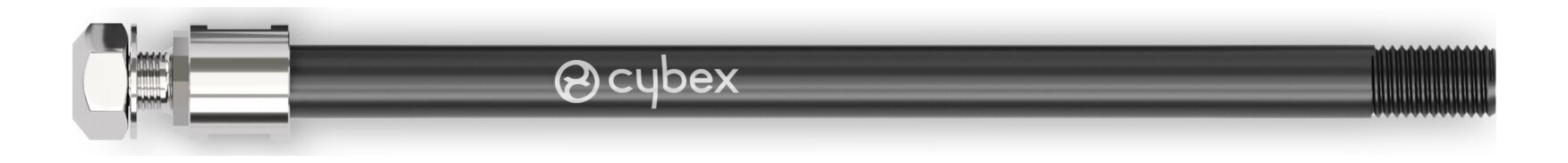 Jeżeli koło Twojego roweru jest mocowane za pomocą osi przelotowej, należy ją wymieć na oś przelotową Cybex dostępną w zestawie rowerowym Cybex. Kiedy standardowa oś Cybex nie pasuje do Twojego roweru, niemiecki producent przygotował szereg osi o niestandardowym wymiarze.
