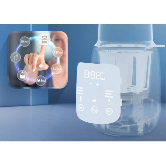Szybkie podgrzewanie - Funkcja szybkiego podgrzewania przydaje się każdemu rodzicowi, który chce wykonać więcej obowiązków w krótszym czasie. Jeśli chcesz przygotować danie ze słoiczka lub wodę do mleka modyfikowanego, urządzenie pomoże Ci to zrobić błyskawicznie.
