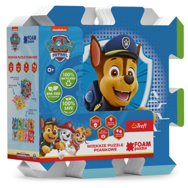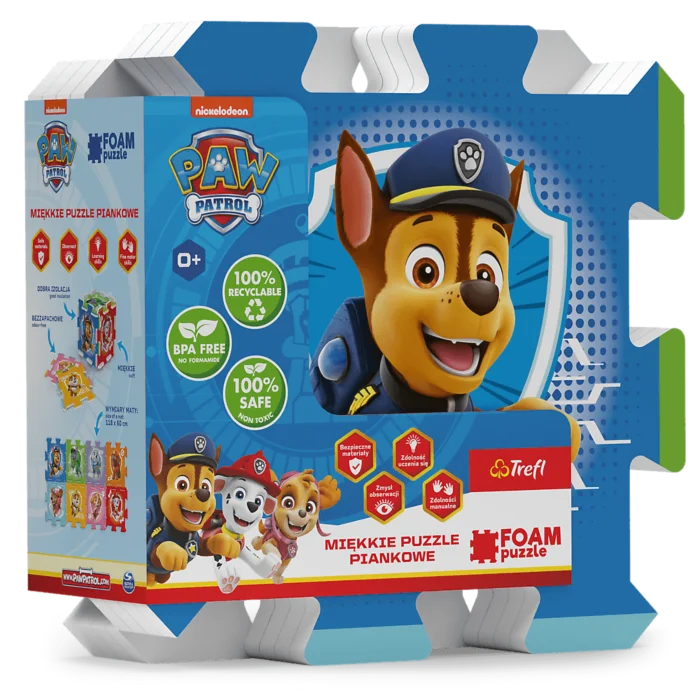 Układanka puzzlopianka Psi Patrol to zestaw dużych i miękkich puzzli, stworzonych z myślą o małych fanach bajki PAW PAtrol.