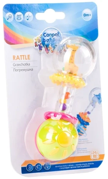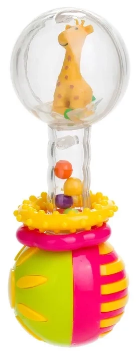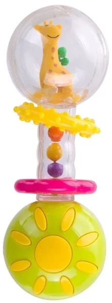 Kolorowa i poręczna grzechotka z ruchomymi elementami zachęca dziecko do ćwiczeń i zabawy, stymulując jego rozwój psychomotoryczny. Dziecku łatwo chwycić ją w rączkach. Ma delikatnie zaokrąglone kształty. Przezroczyste części zabawki zawierają małe, kolorowe elementy, które poruszają się podczas zabawy i wywołują przyjemny dźwięk grzechotania. Przeznaczona dla dzieci w wieku 0 m+.