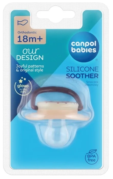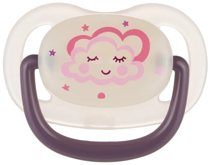 Smoczek uspokajający Night Dreams wykonany z najwyższej jakości bezzapachowego i bezsmakowego silikonu. Wyposażony w gumkę o anatomicznym kształcie. Smoczek dobrze odpowietrza się, dzięki specjalnym otworom wentylacyjnym na tarczce. Posiada świecącą tarczkę, która ułatwia znalezienie smoczka w ciemności. Nie zawiera BPA. Przeznaczony dla dzieci w wieku powyżej 18 miesięcy.