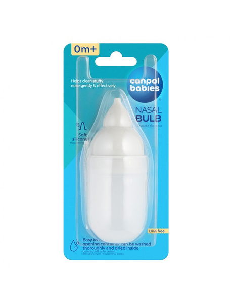 Silikonowa gruszka do nosa pomoże oczyścić dziecięcy nosek z zalegającego kataru i umożliwi mu swobodne oddychanie. Niemowlęta i małe dzieci nie potrafią wydmuchać samodzielnie noska, a zalegająca wydzielina utrudnia oddychanie i sprzyja innym infekcjom. Silikonowa gruszka do nosa Canpol jest łatwa w obsłudze i higieniczna – otwierany pojemnik ułatwia dokładne umycie i osuszenie jej w środku. Specjalna końcówka chroni przed zbyt głębokim włożeniem gruszki do nosa dziecka i podrażnieniem delikatnej śluzówki nosa. Można bezpiecznie używać u dzieci już od pierwszych chwil życia.