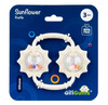 Urocza zabaweczka ze zdwojonym walorem 2w1! Po pierwsze, posiada aż dwie kule wypełnione koralikami, po drugie, łączy w sobie funkcję grzechotki oraz gryzaka. Kolorowe koraliki, wydają wesoły dźwięk przy każdym potrząsaniu zabawką. Otaczają je miękkie obręcze w kształcie słoneczników, ozdobione wypustkami o zróżnicowanym kształcie. Dzięki temu, przy gryzieniu kwiatkowych płatków, wypustki będą masować obolałe dziąsła malucha, przynosząc mu ulgę. Wygodne uchwyty, łączące kwiatki, ułatwią małym rączkom trzymanie zabawki.