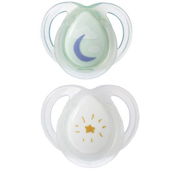 Symetryczny kształt ortodontyczny: Smoczki Anytime są symetryczne, dzięki czemu każda strona smoczka pasuje do buzi dziecka bez względu na to, jak jest umieszczony.