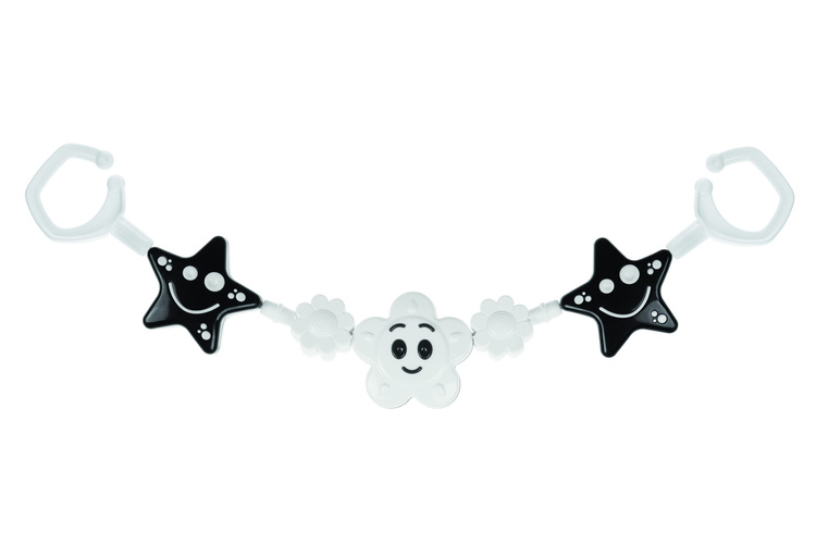 Wesołe dźwięki grzechotki towarzyszą dziecku podczas codziennych spacerów. Czarno-biała kolorystyka idealnie stymuluje zmysł wzroku niemowlaka, który jeszcze nie rozróżnia barw.