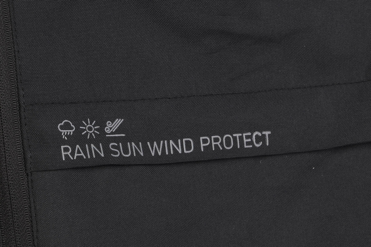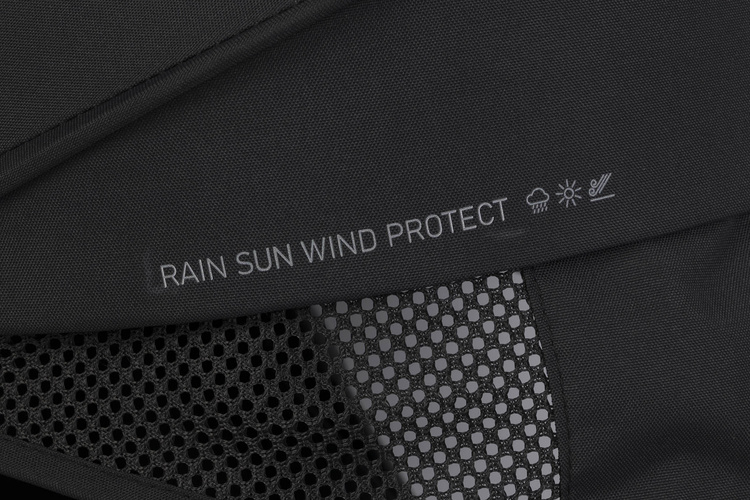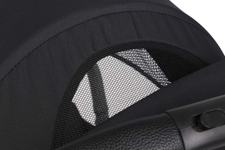 Budka przeciwsłoneczna posiada cichy system regulacji oraz dodatkową rozkładaną sekcję, która umożliwia osłonięcie dziecka przed nisko operującym słońcem. W tylnej części budki znajduje się okienko do podglądania dziecka oraz duży otwierany panel wentylacyjny z siateczką.
