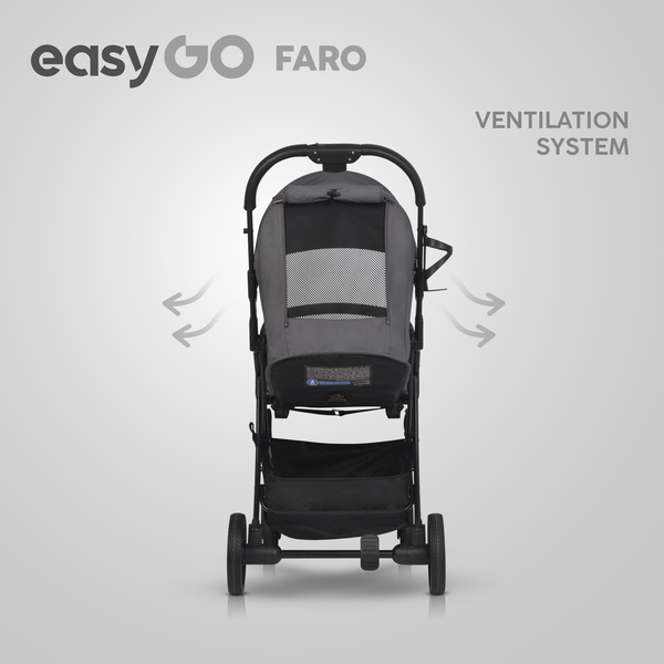 Wózek spacerowy FARO marki EASYGO oferuje niezwykle korzystny stosunek ceny do jakości. Jest to lekka spacerówka z automatycznym systemem składania obsługiwanym jedną ręką przeznaczona dla dzieci do wagi 22 kg lub wieku 4 lat. Wózek po złożeniu pozostaje w pozycji pionowej, a barierka zabezpieczająca dziecko pełni funkcję wygodnego uchwytu do przenoszenia. Dodatkowo złożony wózek można spakować w praktyczny pokrowiec transportowy, co sprawia, że FARO jest również świetnym wózkiem dziecięcym na czas wakacyjnych wyjazdów niezależnie od tego czy podróżujemy samochodem czy samolotem.