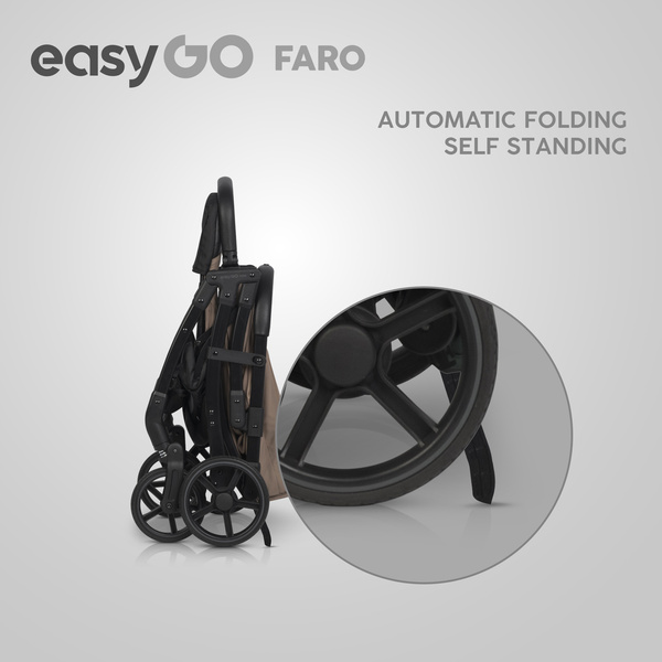 Wózek spacerowy FARO marki EASYGO oferuje niezwykle korzystny stosunek ceny do jakości. Jest to lekka spacerówka z automatycznym systemem składania obsługiwanym jedną ręką przeznaczona dla dzieci do wagi 22 kg lub wieku 4 lat. Wózek po złożeniu pozostaje w pozycji pionowej, a barierka zabezpieczająca dziecko pełni funkcję wygodnego uchwytu do przenoszenia. Dodatkowo złożony wózek można spakować w praktyczny pokrowiec transportowy, co sprawia, że FARO jest również świetnym wózkiem dziecięcym na czas wakacyjnych wyjazdów niezależnie od tego czy podróżujemy samochodem czy samolotem.