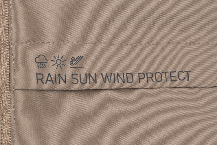 Budka przeciwsłoneczna posiada cichy system regulacji oraz dodatkową rozkładaną sekcję, która umożliwia osłonięcie dziecka przed nisko operującym słońcem. W tylnej części budki znajduje się okienko do podglądania dziecka oraz duży otwierany panel wentylacyjny z siateczką.