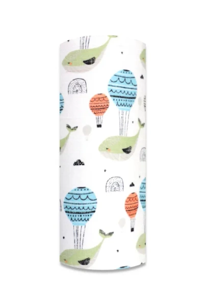 Tetrowa pieluszka posiada print wykonany w przyjemnych dla oka kolorach z motywem dmuchawców.
