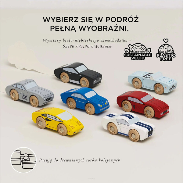 Urocza kolekcja 7 klasycznych drewnianych autek wyścigowych została zaprojektowana tak, aby wyobraźnia Twojego dziecka pracowała na najwyższych obrotach! Wytworzone z dużą dbałością i starannością wykonania te miniaturowe pojazdy emanują ponadczasowym urokiem dzięki szczegółowym grafikom i drobnym detalom, które nie umkną uwadze bystrego rajdowca.
