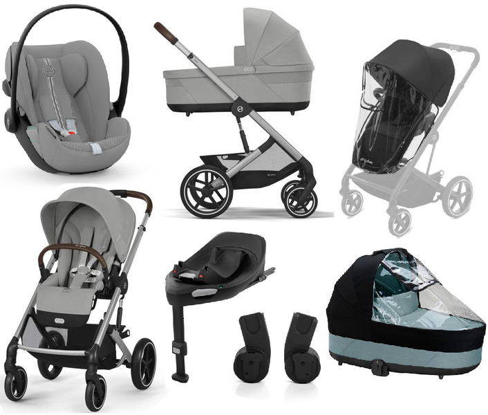 Cybex Balios S Lux 2.0 Wózek Głęboko-Spacerowy Stone Grey + Cloud G I-Size Fotelik Samochodowy 0-13kg + Baza G + Osłony Przeciwdeszczowe + Adaptery