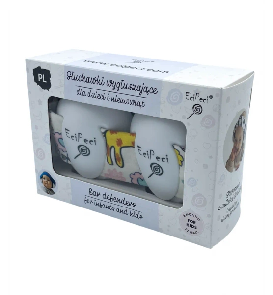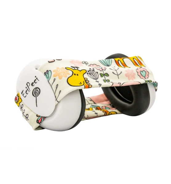 Słuchawki posiadają specjalnie skonstruowane nauszniki wyciszające, tłumiące dźwięki i hałas oraz ręcznie szytą opaskę niwelującą ucisk na główkę dziecka. Elastyczna opaska regulowana za pomocą rzepa pozwala na doskonałe dopasowanie słuchawek oraz łatwe ich założenie.