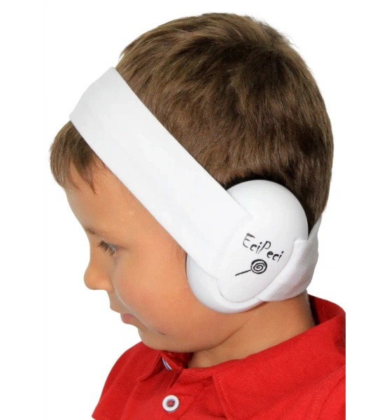 Słuchawki posiadają specjalnie skonstruowane nauszniki wyciszające, tłumiące dźwięki i hałas oraz ręcznie szytą opaskę niwelującą ucisk na główkę dziecka. Elastyczna opaska regulowana za pomocą rzepa pozwala na doskonałe dopasowanie słuchawek oraz łatwe ich założenie.