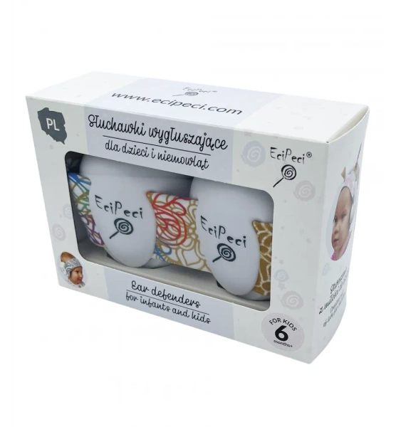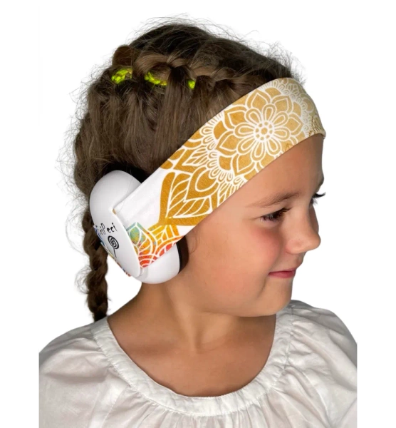 Słuchawki posiadają specjalnie skonstruowane nauszniki wyciszające, tłumiące dźwięki i hałas oraz ręcznie szytą opaskę niwelującą ucisk na główkę dziecka. Elastyczna opaska regulowana za pomocą rzepa pozwala na doskonałe dopasowanie słuchawek oraz łatwe ich założenie.