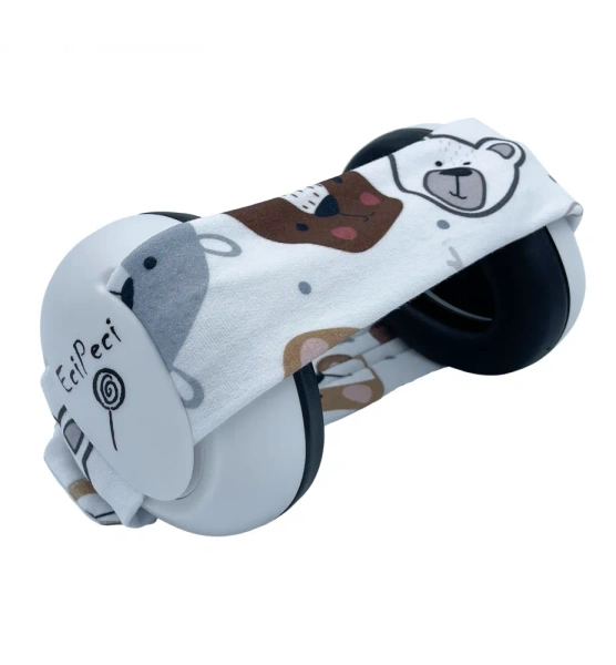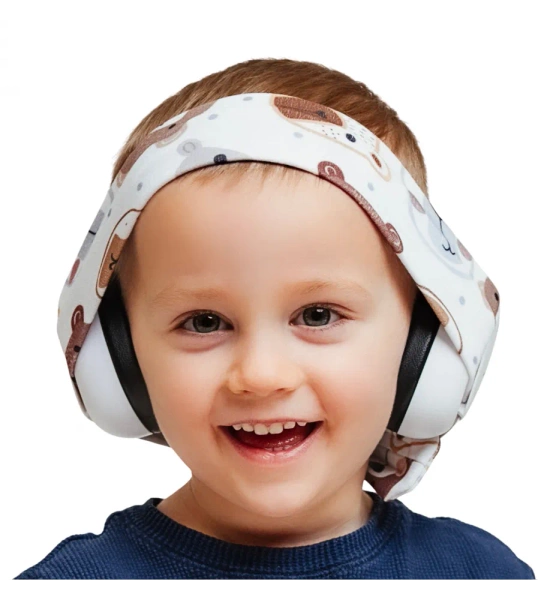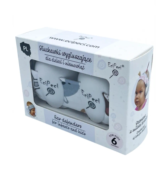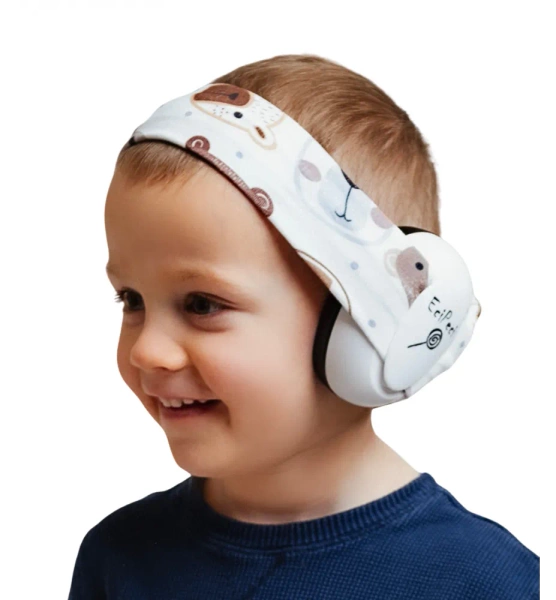 Słuchawki posiadają specjalnie skonstruowane nauszniki wyciszające, tłumiące dźwięki i hałas oraz ręcznie szytą opaskę niwelującą ucisk na główkę dziecka. Elastyczna opaska regulowana za pomocą rzepa pozwala na doskonałe dopasowanie słuchawek oraz łatwe ich założenie.