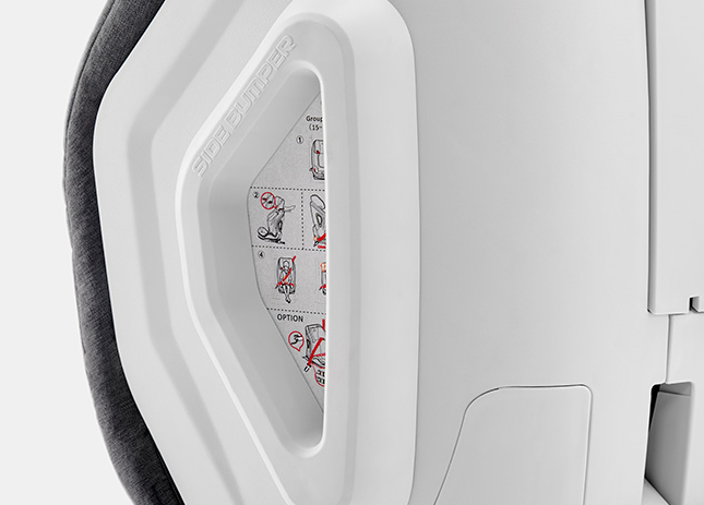 Dodatkowa ochrona Side Protection System redukuje siły uderzenia poprzez zmniejszenie odległości między wnętrzem auta a fotelikiem.