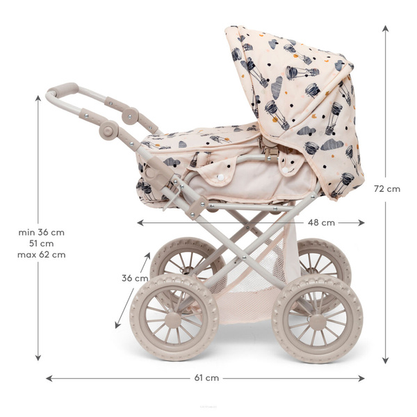 Pastelowe kolory, uroczy design, skandynawski styl, dbałość o detale i wysoka jakość wykonania zachwycą nawet najbardziej wymagających użytkowników wózka i ich lalki. Opakowanie nie zawiera lalki.
