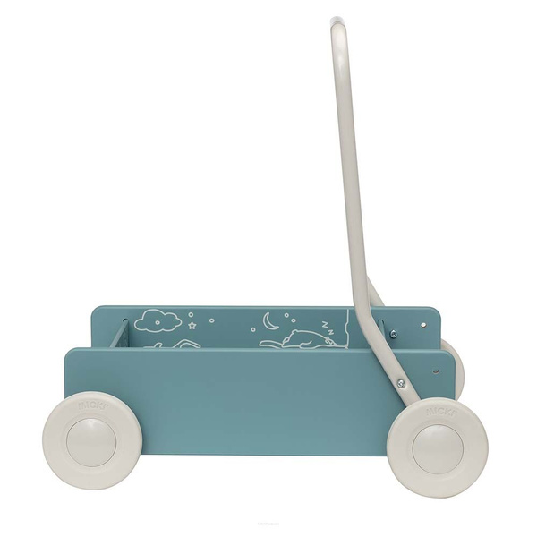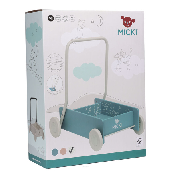 Dziecko podczas nauki chodzenia może zabrać swojego ulubionego misia na spacer w wózku lub przewozić klocki. Klasyczny chodzik Micki z serii Premium jest ozdobiony inspirującymi grawerowanymi ilustracjami, dzięki czemu stanowi nie tylko narzędzie wspierające rozwój ruchowy, ale jest także kreatywną zabawką, która kieruje malucha w podróż pełną wyobraźni. Wygrawerowane detale sprawiają, że dziecko może nie tylko zobaczyć ilustracje, ale także je poczuć angażując zmysł dotyku. Został wykonany z dbałością o najmniejsze detale z surowego naturalnego drewna, którego struktura i przekrój zapewniają nowe wrażenia z zabawy.
