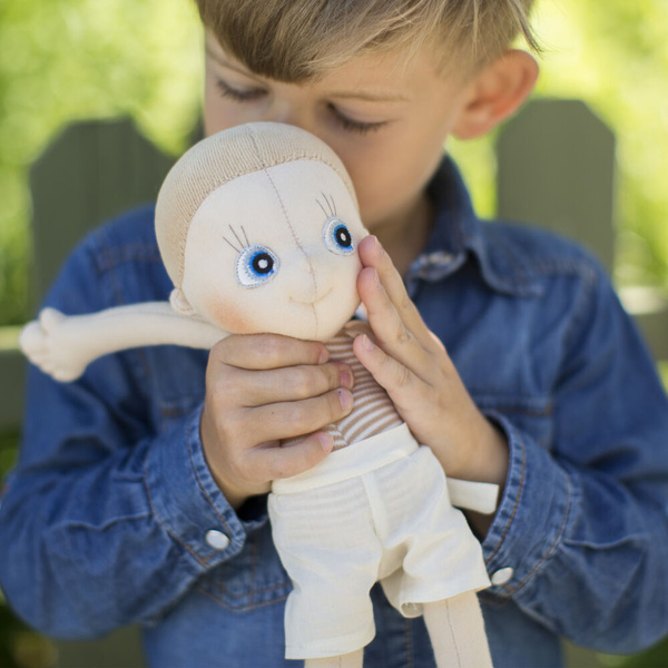 Przepiękne miękkie lalki w neutralnych kolorach są najlepszymi pierwszymi przytulankami dzieci od dnia narodzin i towarzyszą im przez kolejne etapy rozwoju. Wykonane z organicznej bawełny występują w dwóch rozmiarach, mają długie nóżki i długie rączki idealne do chwytania przez dziecko i chodzenia na spacer „za rękę”. Lalki w mniejszym rozmiarze posiadają sznureczki, dzięki którym można je przywiązać np. do wózka.