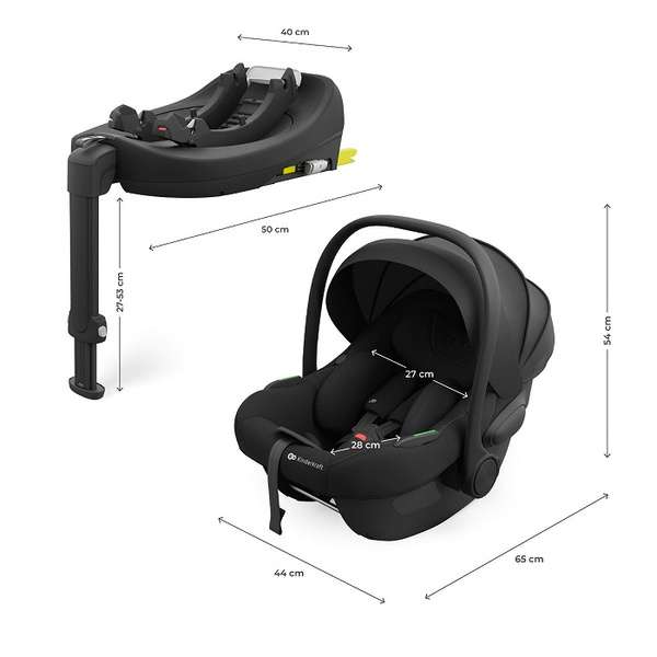 Nosidełko obraca się o 90° stopni na bazie, co ułatwia wkładanie dziecka do auta. Można je również wpiąć w stelaż wielu wózków Kinderkraft (przy użyciu dedykowanych adapterów).