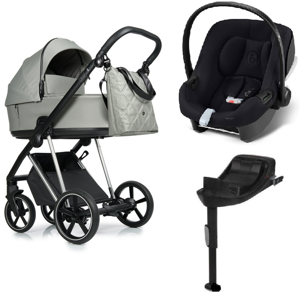 Roan Ivi 2.0 Wózek Głęboko-Spacerowy Rama Light Chrome Tea Leaf + Cybex Aton B2 i-Size Fotelik Samochodowy 0-13kg + Baza One Volcano Black