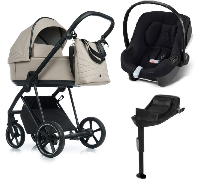Roan Ivi 2.0 Wózek Głeboko-Spacerowy Sezame + Cybex Aton B2 i-Size Fotelik Samochodowy 0-13kg + Baza One Volcano Black