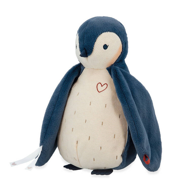 Przeurocza przytulanka Pingwinek z kolekcji Complices francuskiej marki KALOO to idealny pierwszy przyjaciel Twojego maluszka, który przy okazji niesie ważne przesłanie na temat bliskich więzi. Pingwinek jest miękki, piękny, perfekcyjnie wykończony i przede wszystkim całkowicie bezpieczny dla dziecka już od pierwszych dni jego życia. Uszyty z dwóch rodzajów przyjemnych w dotyku tkanin w odcieniach bieli i koloru niebieskiego: futerka i aksamitnego sztruksu. Posiada także filcowe nóżki dodatkowo stymulujące zmysł dotyku. Dodatkowo pingwinek wyposażony jest w tasiemkę z wyhaftowanym serduszkiem – symbolem bliskości, za pomocą której można łączyć jego skrzydełka ze sobą, a także z innymi przytulankami z kolekcji. Stworzony do tulenia, usypiania, uspokajania, zabierania na wyjazdy czy pobyty u dziadków mają ułatwiać maleństwu okresy separacji z rodzicem i wspierać go w budowaniu bezpiecznych więzi.