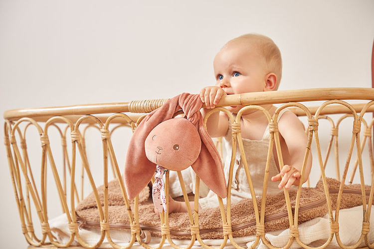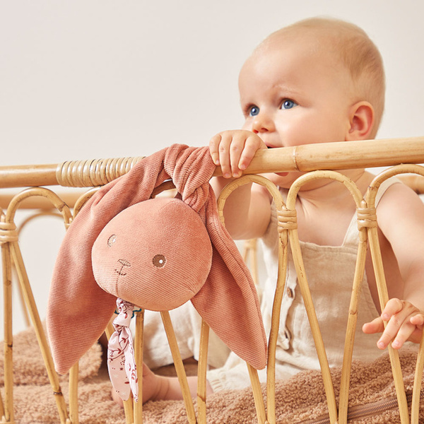 Urocza miękka pozytywka Królik francuskiej marki KALOO to idealna zabawka dla Twojego dziecka, bezpieczna od pierwszych dni życia. Jest piękna, perfekcyjnie wykończona i gra utwór „I love you truly”. Króliczek ma kolor zgaszonej terracotty oraz haftowany pyszczek. Jego długie uszy można wiązać na supeł i rozplątywać (oraz używać ich do mocowania zabawki np. przy łóżeczku czy w wózku maluszka). Wspiera naukę chwytania i rozwój sensoryczny (dotyk, słuch), a także uspokaja.