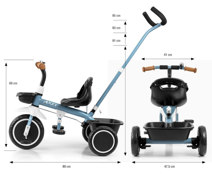 Rowerek trójkołowy AXEL został stworzony z myślą o komforcie i bezpieczeństwie maluszków, oraz wygodzie rodziców. Idealne rozwiązanie dla aktywnych Smyków,  które nudzi przejażdżka w spacerówce.