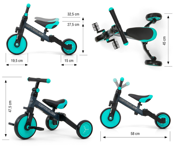 Optimus został zaprojektowany, aby stać się jednym z najlepszych wyborów na pierwszy pojazd twojego dziecka. Dzięki stabilnej trójkołowej konstrukcji zapewnia dziecku odpowiedni poziom bezpieczeństwa i ułatwia zdobywanie nowych umiejętności. Kiedy dziecko ma już opanowane podstawy jazdy, możemy dodać pedały lub zmienić go w klasyczny rowerek biegowy.