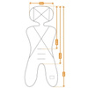 Do szyjki wkładki doszyte są troczki, które można zawiązać przekładając pod tapicerką (w miejscu gdzie wychodzą pasy naramienne). Dodaliśmy też gumki na zagłówku.