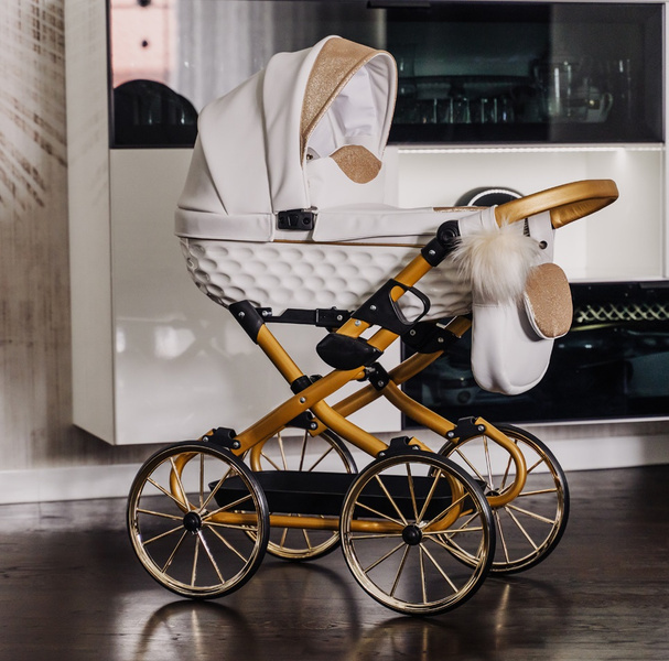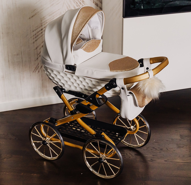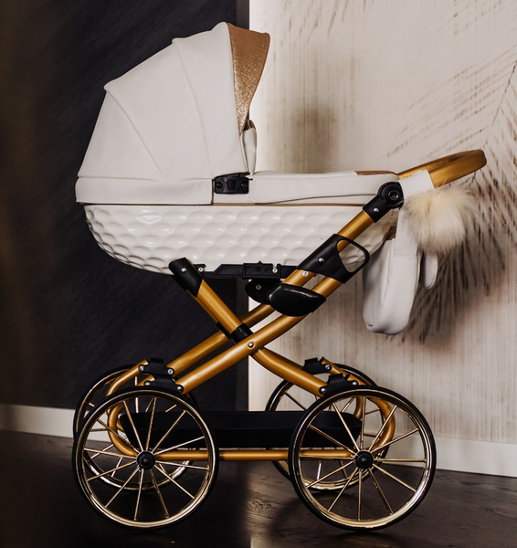 Rączka do prowadzenia wózka obszyta EKOSKÓRĄ w kolorze ZŁOTYM