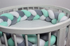 SenLove Ochraniacz do Łóżeczka Warkocz 360cm Szaro-Biało-Miętowy