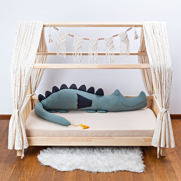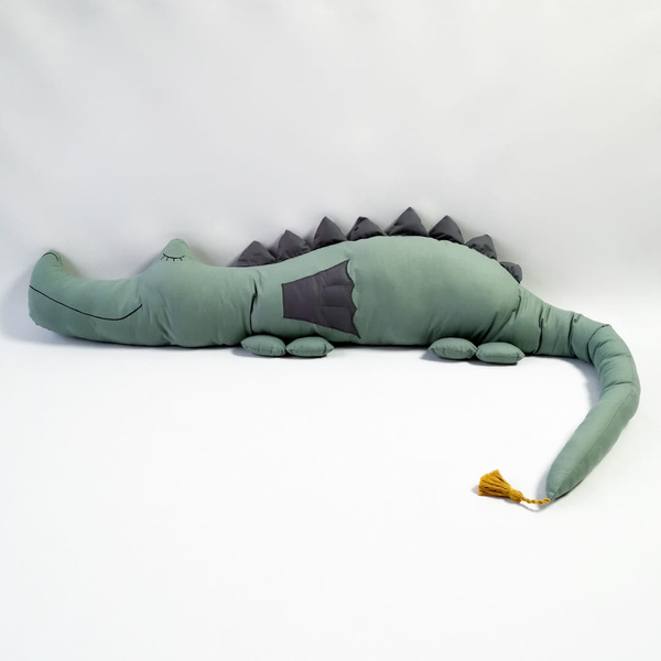 Smokozaur ma długość ok 200 cm (+/-5 cm) i uszyty jest z bawełny posiadającej certyfikat Oeko-Tex Standard 100 i /lub TUV oraz wypełniony antyalergiczną włókniną silikonową.