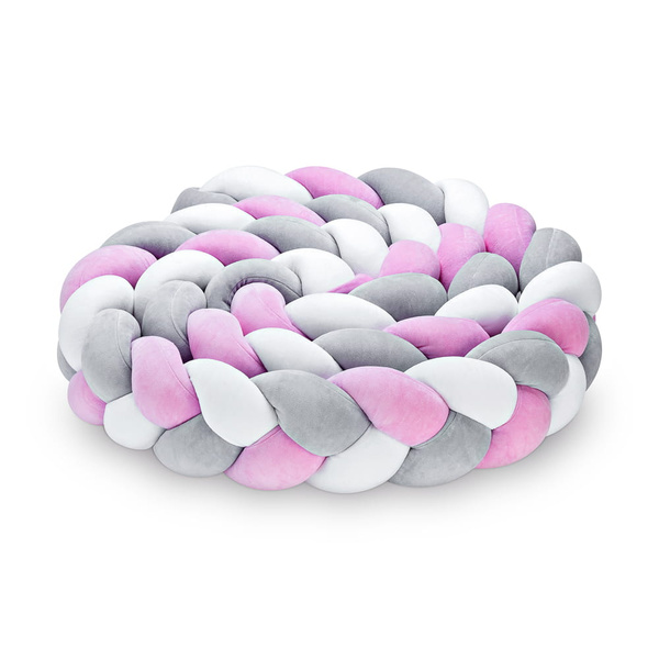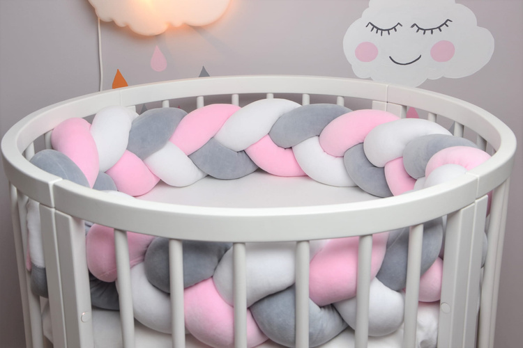 SenLove Ochraniacz do Łóżeczka Warkocz 400cm Szaro-Różowo-Biały
