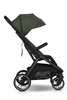 Budka przeciwsłoneczna posiada dodatkową rozpinaną sekcję, która pozwala pochylić ją do przodu i osłonić dziecko przed nisko operującym słońcem. Dodatkowo budka zakończona jest daszkiem przeciwsłonecznym, który w razie potrzeby można złożyć i schować we wnętrzu budki. W tylnej części budki znajdziemy okienko do podglądania dziecka i olbrzymi zamykany panel wentylacyjny wykończony siateczką. Projektanci nie zapomnieli również o praktycznej kieszonce.