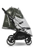 W zestawie z wózkiem znajduje się folia przeciwdeszczowa z wywietrznikami na wysokości twarzy dziecka, wygodny pokrowiec na nóżki (ocieplacz), pojemy koszyk oraz praktyczny pokrowiec transportowy, który pomieści złożony wózek razem z kołami.