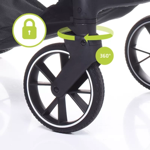 Model Foster wyposażono w amortyzację z przodu i z tyłu, co zapewnia płynne prowadzenie nawet na nierównych nawierzchniach. Duże koła pokryte gumową powłoką nie wymagają obsługi, a ich doskonała przyczepność i zwrotność ułatwiają prowadzenie wózka w każdej sytuacji. Przednie koła obracają się o 360 stopni i mogą zostać zablokowane, co daje pełną kontrolę nad manewrowaniem.