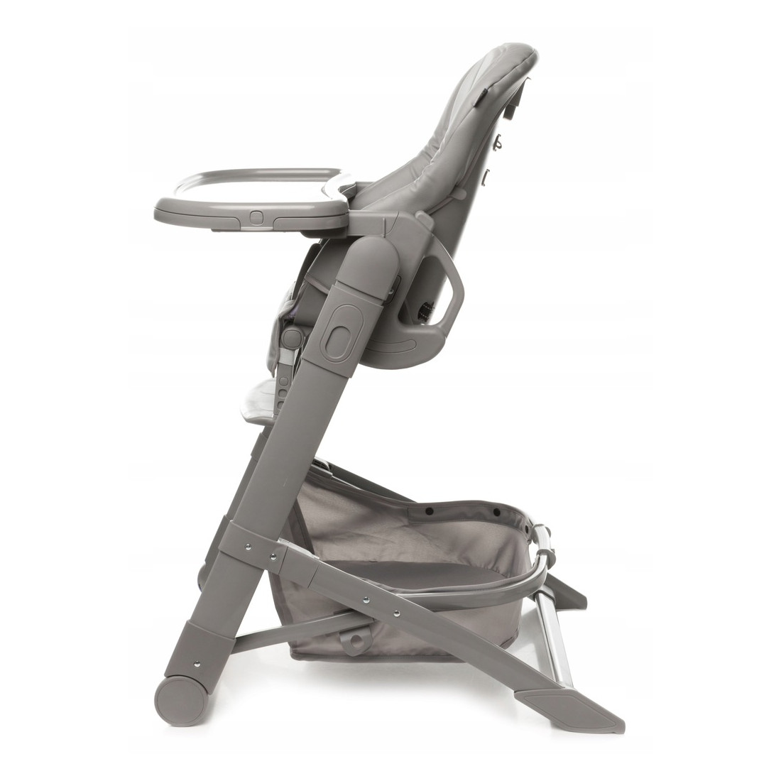 Podwójna tacka nadaje się do mycia w zmywarce, można ją regulować w dwóch pozycjach lub całkowicie zdemontować dla większego komfortu dziecka.