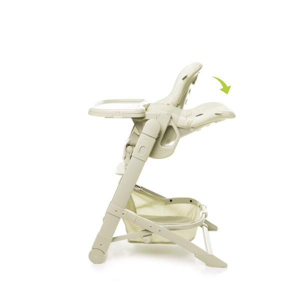 Bardzo duże, anatomicznie ukształtowane siedzisko zapewniające prawidłową postawę ciała. Jego wysokość może być regulowana w 6 pozycjach, za pomocą wygodnych uchwytów znajdujących się z tyłu krzesełka. Dla bezpieczeństwa dziecka siedzisko wyposażone jest w pięciopunktowe pasy z osłonkami na ramiona i dodatkowym elementem zabezpieczającym przed wyślizgnięciem się z krzesełka.