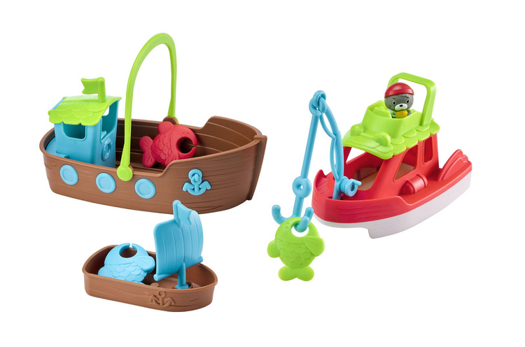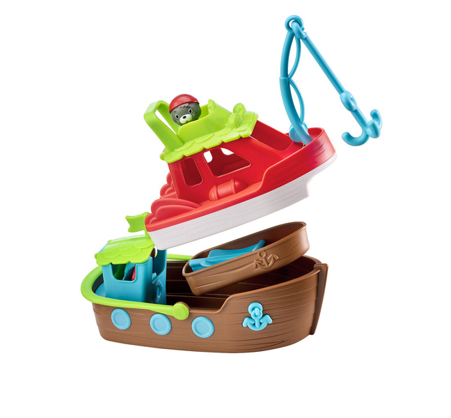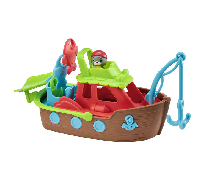 Zestaw Kuter Rybacki Klorofil zawiera: dużą łódkę z uchwytem, kuter rybacki z wędką, żaglówkę z żaglem, 3 rybki, zwierzątko morsa Malo. Dla dzieci 18 m-cy +.