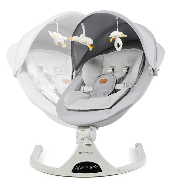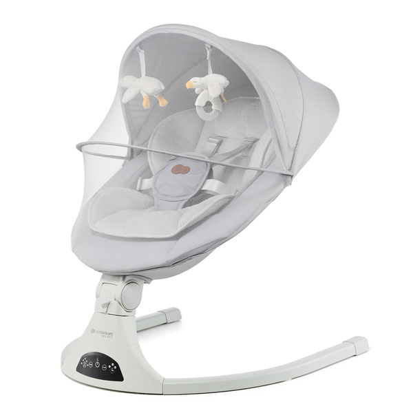 Elektryczny bujaczek-leżaczek - możliwość sterowania pilotem lub przez panel dotykowy Regulowane, ergonomiczne siedzisko Lekki i łatwy do zabrania w podróż Bardzo miękka, wyjmowana wkładka i 5-punktowe pasy bezpieczeństwa Odpinany daszek z wbudowaną moskitierą i dwie odpinane zabawki