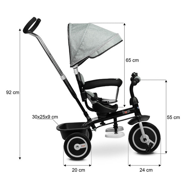 Rowerek trójkołowy Buzz jest doskonałym rozwiązaniem dla rodziców , którzy szukają wielofunkcyjnego rowerka trójkołowego dla swoich dzieci. Rowerek trójkołowy jest idealnym rowerkiem dla dzieci, które dopiero rozpoczynają swoją przygodę z jazdą na rowerze. Rowerek Derby jest także ciekawą alternatywą dla tradycyjnych wózków spacerowych. Rowerek wyposażono w rączkę, dzięki której rodzic może w sposób niezwykle komfortowy pchać i sterować rowerkiem. Wraz z rozwjem umiejętności dziecka, możliwy jest demontaż poszczególnych części rowerka, m.in. rączki do sterowania, czy oparcia. Rowerek posiada daszek, który ochroni dziecko przed promieniami słonecznymi, a także pojemny kosz, który pomieści wszelkie potrzebne drobiazgi. Posiada także wygodne siodełko, które można obrócić o 180 stopni.