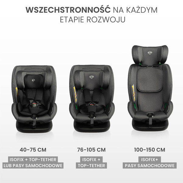 Securo to innowacyjny fotelik samochodowy dla dzieci, stworzony z myślą o bezpieczeństwie i komforcie najmłodszych pasażerów. Zaprojektowany dla dzieci o wzroście od 40 cm do 150 cm, fotelik oferuje kompleksową ochronę oraz wygodę podczas podróży. Securo spełnia najnowsze normy homologacji i-Size, dając pasażerom pewność, że podróżują zgodnie z najwyższymi standardami bezpieczeństwa. Może być zamontowany w samochodzie za pomocą zaczepów ISOFIX i top-tether lub za pomocą zaczepów ISOFIX i pasów samochodowych. Fotelik został wyposażony w zintegrowany przycisk odpowiadający jednocześnie za regulację pochylenia i obracanie fotelika o 360 stopni, dzięki temu szybko i wygodnie można zabezpieczyć dziecko przed podróżą. Fotelik Securo dostosowany jest do potrzeb dzieci już od pierwszych miesięcy życia, towarzysząc im aż do momentu, gdy nie będą już wymagały fotelika.