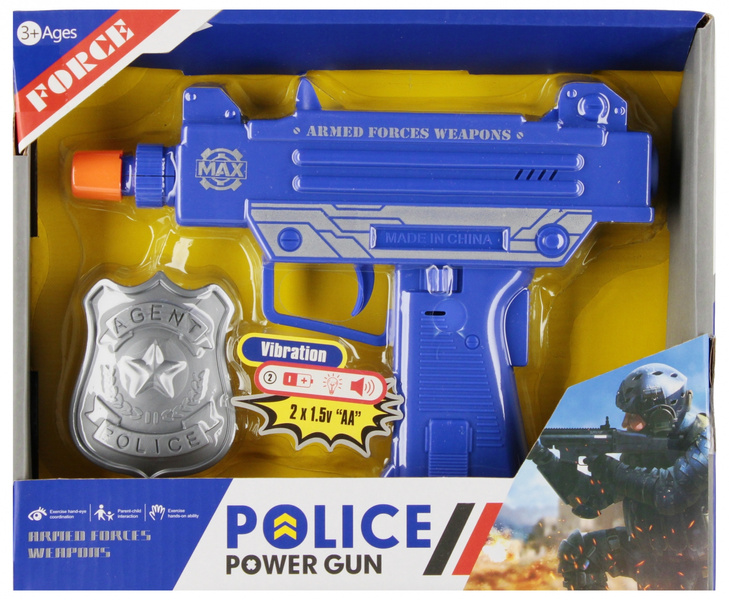 Zalety produktu rozwijanie wyobraźni dziecka poprzez różne scenariusze zabawy, posiada efekty świetlne oraz dźwiękowe, nauka odróżniania dobra od zła. Razem z zestawem MEGA CREATIVE łap przestępców. Pokaż odznakę a w razie ucieczki wystrzel ostrzegawczo w niebo Zawartość zestawu pistolet, odznaka. Zabawki wykonane z plastiku