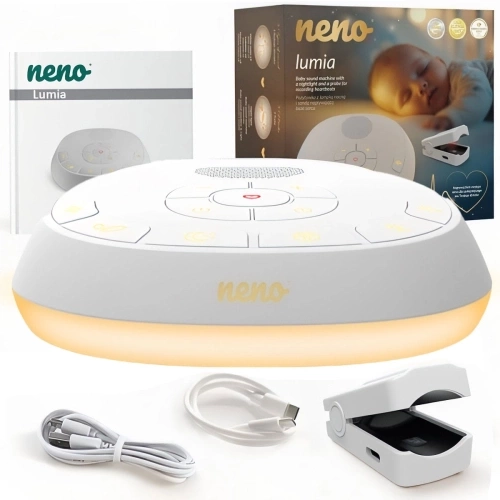 Neno Lumia to unikalna pozytywka z lampką nocną, która nagrywa bicie serca rodzica, dając dziecku poczucie bezpieczeństwa. Oferuje biały szum, dźwięki natury, kołysanki oraz 11 kolorów światła z regulacją jasności. Dzięki timerowi i 7 poziomom głośności dostosujesz działanie do potrzeb malucha. Mała, przenośna i wielofunkcyjna – idealna do usypiania i wyciszania dziecka